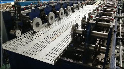 Особенность работы именно этого станка в том, что он позволяет выбирать размер изделия произвольно, то есть клети раздвигаются по ширине с помощью винтового механизма, но правда этот процесс чисто механический. А вот с точки зрения электрики есть другой нюанс - все клети станка объединены в четыре группы, а задача шкафа управления эти привода выставить по скорости так, чтобы прокатка происходила без перекосов и один привод не тянул или не тормозил другой.